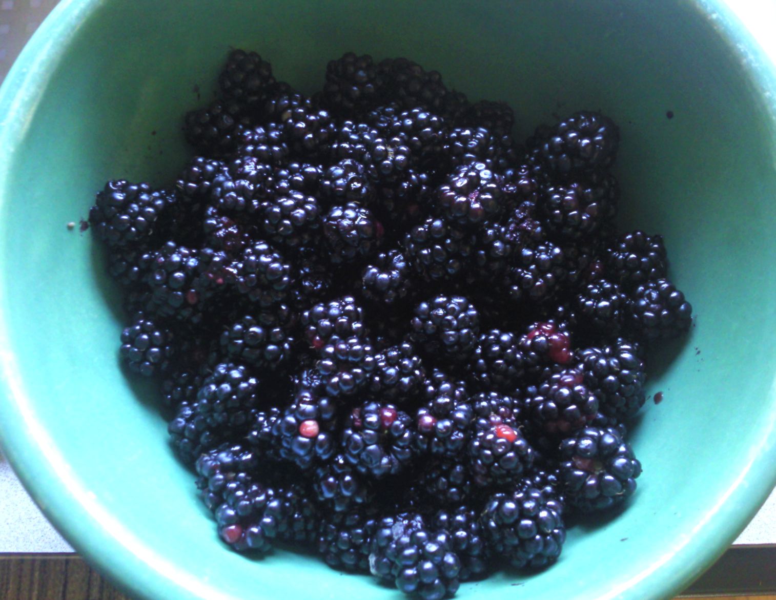 When these freshly picked Sonoma blackberries got soft, I juiced them and boiled the juice with 1-1/2 cups sugar and 1 cup water in a saucepan to make blackberry syrup.