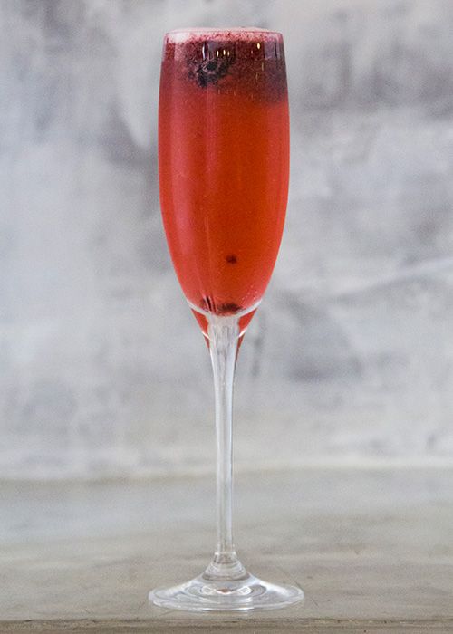 This cocktail from Saveur‘s article called Bubblicious is a bubbly take on the Bramble with prosecco mixed with blackberries, lemon, vodka and Cointreau. It’s poured at Oak restaurant in Dallas.